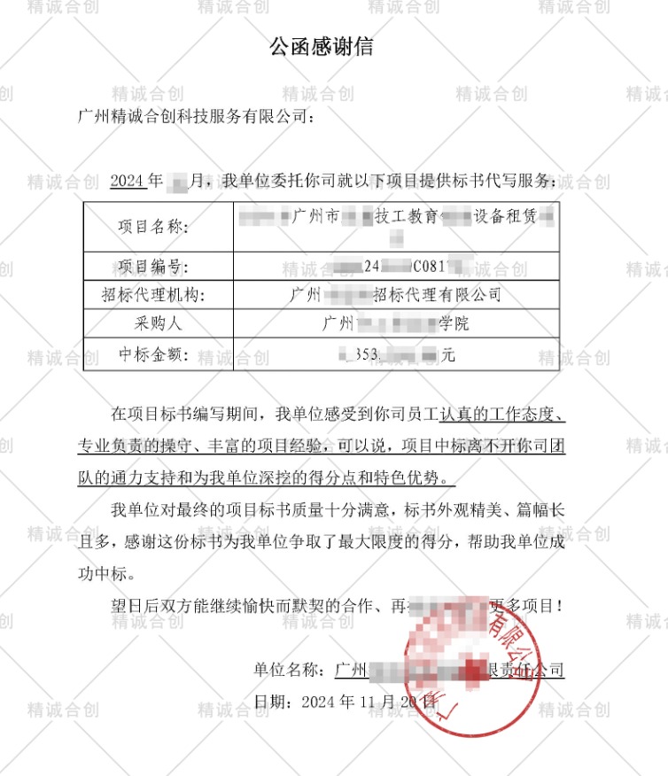 感谢客户选择我司标书编制服务,我们将以诚信负责的态度和高效专业的作风,继续协助客户中标!